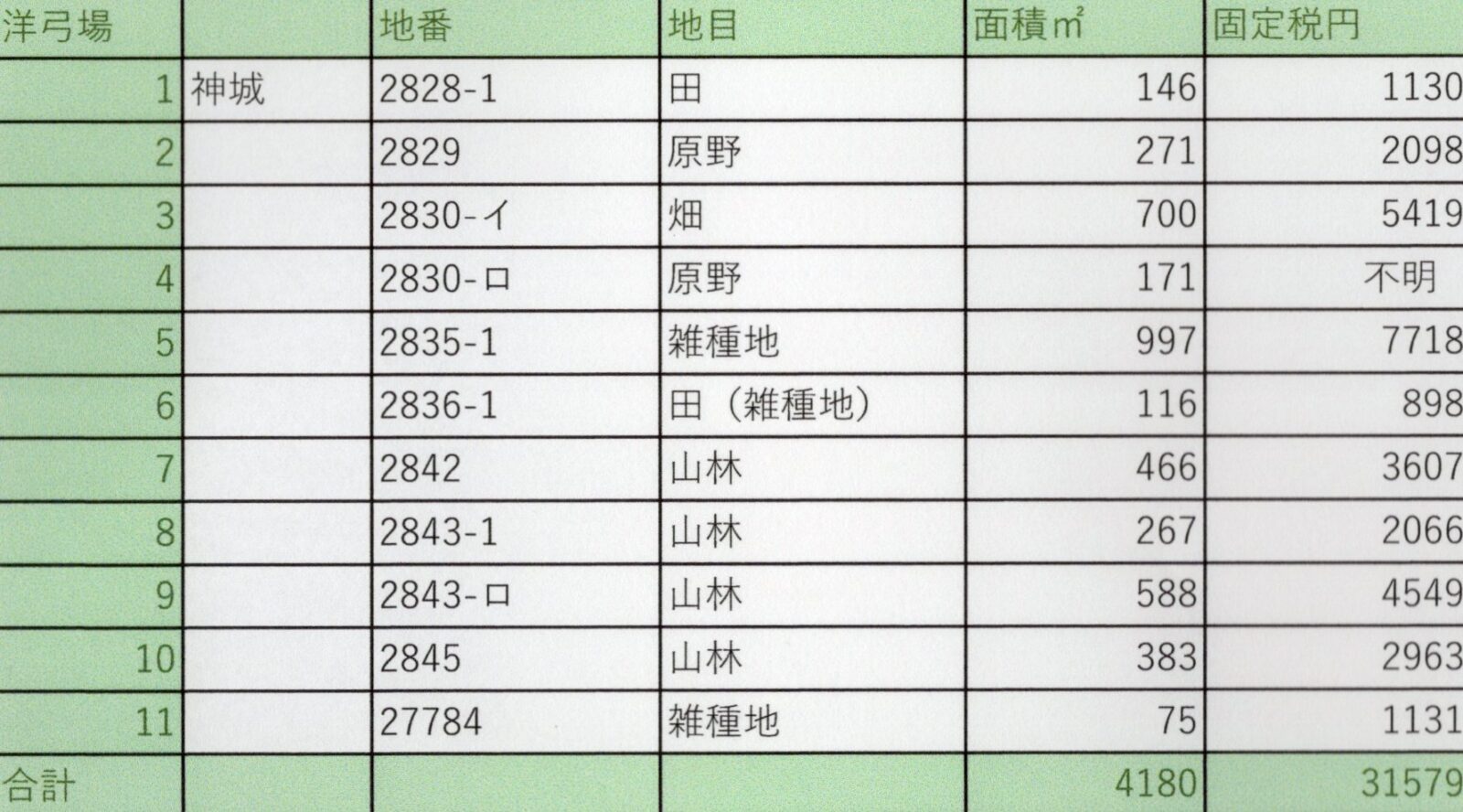 土地筆の明細