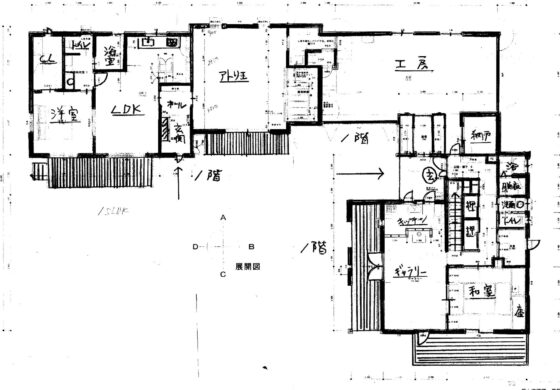 | 間取内容 | K1階 2室K2階 1室その他14.5帖 1階 1室その他1階 2室和室11帖 1階 1室LDK19.6帖 1階 1室洋室9.3帖 1階 1室LDK23.8帖 2階 1室洋室9.6帖 2階 1室洋室5.4帖 2階 1室 LDKは3か所+ギャラリー、アトリエ、工房あり  |