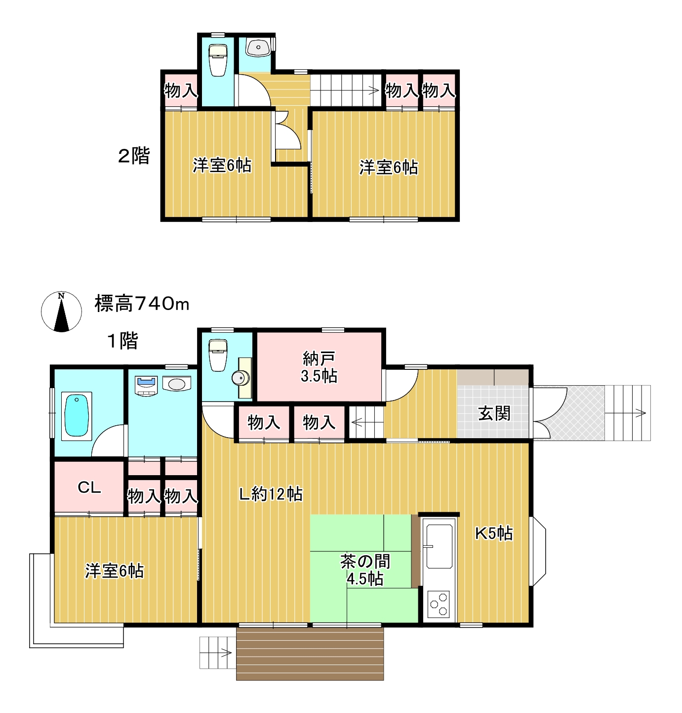| 間取内容 | LD12帖 K5帖 洋室6帖 洋室6帖 2階 2室S3.5帖 | ||